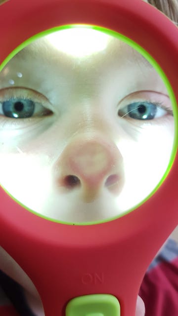Voilà, qu’à peine arrivé chez le Si Tu Veux, un familien s’empare d’une de mes « génialllisssimes » loupes lumineuses pour en faire… bon usage !