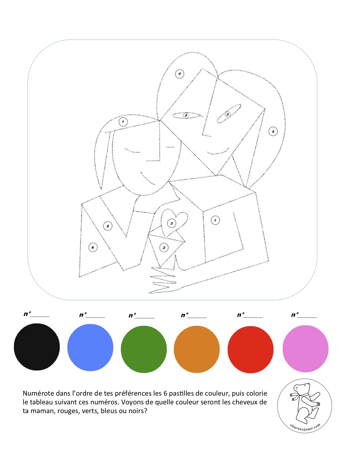 28 Mai 2021 Jeux à 0 euro / Jeux pour les fêtes du calendrier Maman tout-color Publié par Madeleine Deny Un coloriage « cubiste“ maman-enfant suivant ses couleurs préférées … en voilà une belle idée ARTISTIX pour un cadeau de fête des mères! Partager :Tweet Cliquer pour envoyer un lien par e-mail à un ami(ouvre dans une nouvelle fenêtre) E-mail Plus Cliquer pour imprimer(ouvre dans une nouvelle fenêtre) Imprimer J’aime chargement… Similaire