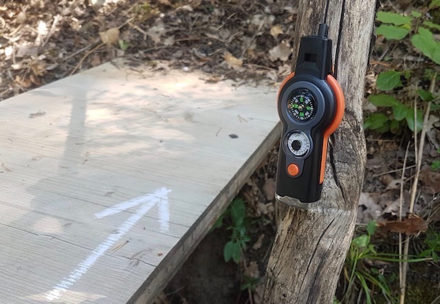 La boussole est un instrument qui sert à indiquer les directions. Elle comporte 2 aiguilles ou flèches, l’une indique toujours le nord, l’autre est la flèche d’orientation. Elle nous permet de nous orienter vers la direction souhaitée, inscrite sur le contour du cadran : Nord (0°), Est ( 90°), Sud (180°) Ouest (270°).
