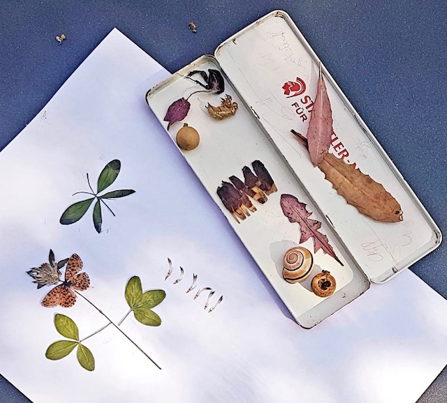 Faire de belles compositions avec si peu de choses, manier avec délicatesse les petits trésors glanés, leur donnera bien plus d’émotions qu’un dessin à colorier !