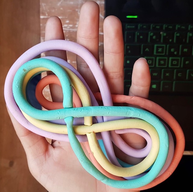 Alors, chez moi, j’invite une familienne à prendre le relais pour vous montrer comment de simples rouleaux de pâte à modeler permettent de faire un fabuleux jeu d’intelligence spatiale.