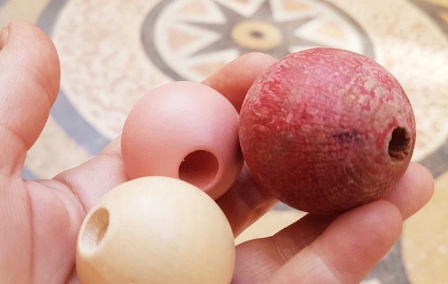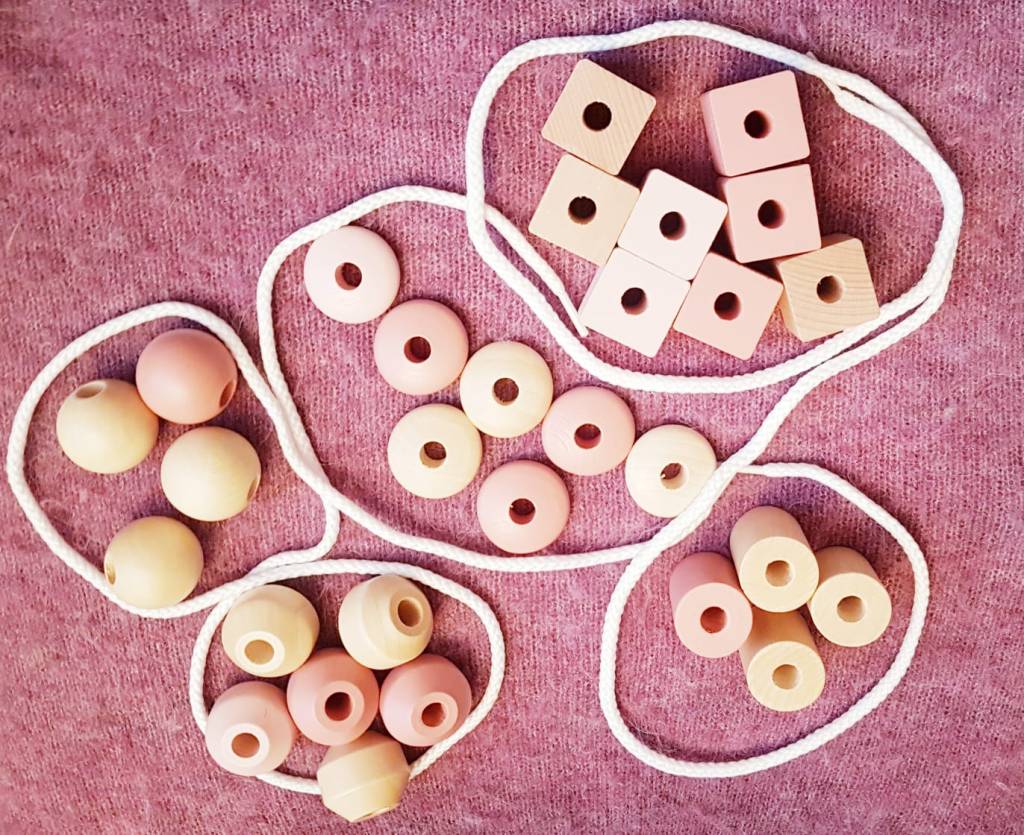 J’ai parfois le sentiment que nos enfanteaux ne profitent pas à fond des jeux que l’on met entre leurs mains. C’est dommage ! Souvent on n’en voit pas tout le potentiel pour de premiers apprentissages ludiques. C’est le cas des grosses perles de bois à enfiler.