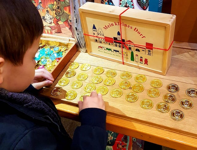 Je préfère nettement cette bonne façon de faire, celle des parents de ce jeune new-yorkais, découvrant ce matin le Si Tu Veux. Le titi tombe en arrêt devant la boîte à trésor de la shop, celle où on a le droit de plonger les mains dans les diamants et pièces d’or (en plastoc !)