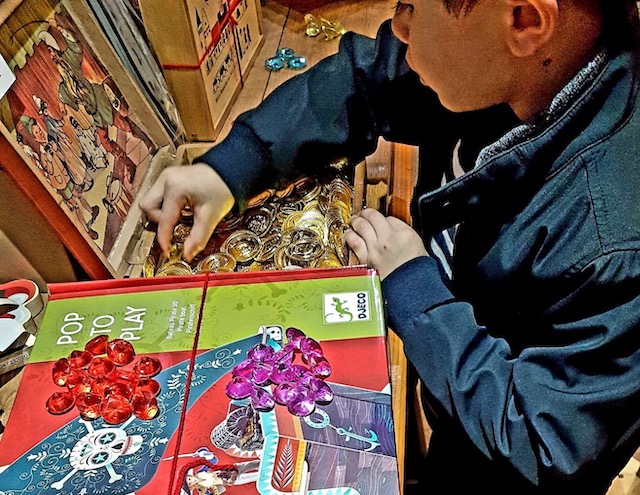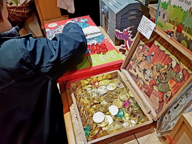 Je préfère nettement cette bonne façon de faire, celle des parents de ce jeune new-yorkais, découvrant ce matin le Si Tu Veux. Le titi tombe en arrêt devant la boîte à trésor de la shop, celle où on a le droit de plonger les mains dans les diamants et pièces d’or (en plastoc !)