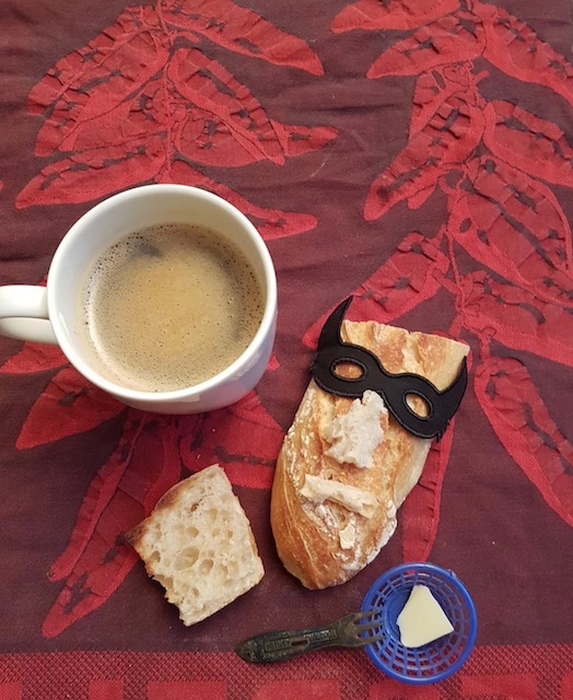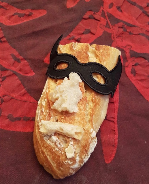 Mon pain masqué (merci à la poupée du Si Tu Veux de lui avoir prêté son masque) semble avoir été, dans une autre vie, un théâtreux. Il a sûrement joué dans la fameuse pièce « Le Mardi Gras ou Vivent la joie et les pommes de terre » …