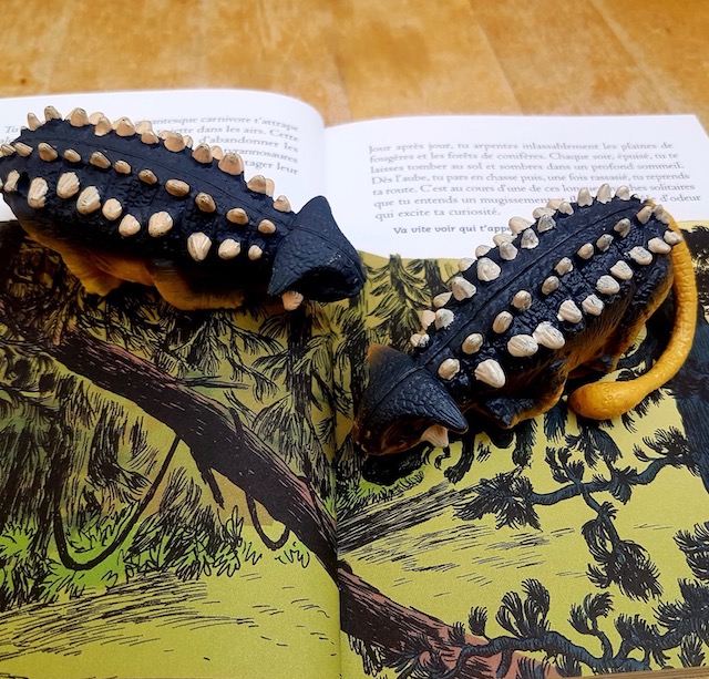 Je leur montre aussi l’un de mes dinosaures mécaniques, un Ankylosaure « so perfect » qui s’abaisse et roule sur lui pour protéger son ventre en cas d’attaque (le seul endroit de son corps qui n’est pas couvert de plaque osseuses)