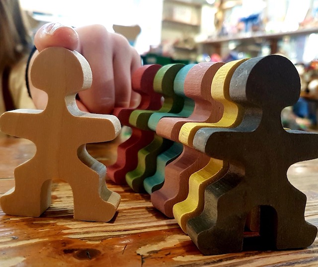 *7 bonhommes en carton chacun colorié d’une couleur feront aussi très bien l’affaire !