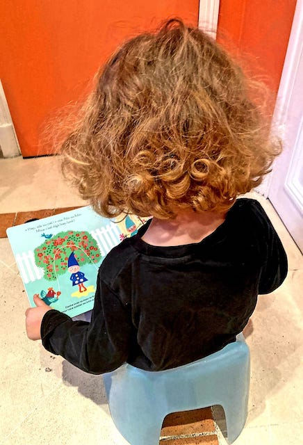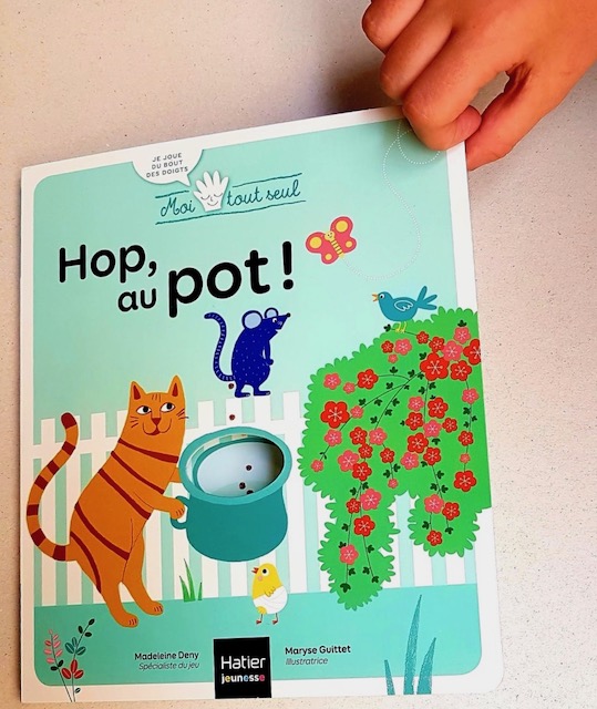 Pas de photo posée, mais juste la vraie image d’une familienne dans sa période apprentissage sur le pot… prise sur le vif. Trop mignonne, la voilà passionnée par ce qui se passe dans le nouveau livre animé « Hop, au pot ! »