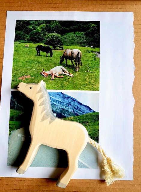 Comme d’hab’de par ici, l’activité est facile à organiser. On chope quelques photos de paysages dans des magazines. Elles sont collées sur du carton avec un bout plié en avant et deux autres bouts de carton collés sur les côtés.