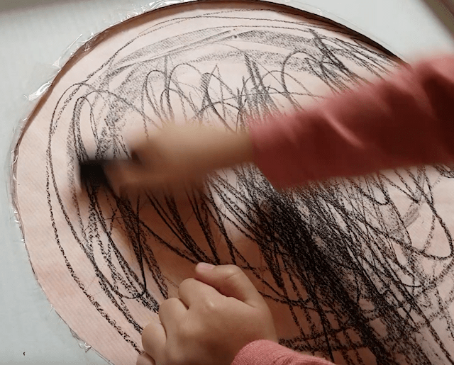 Tourner autour de la forme en gribouillant puis la remplir les mettaient en joie. L’un d’eux a accompagné son tracé dynamique d’un charmant petit chant … vroum ! vroum !
