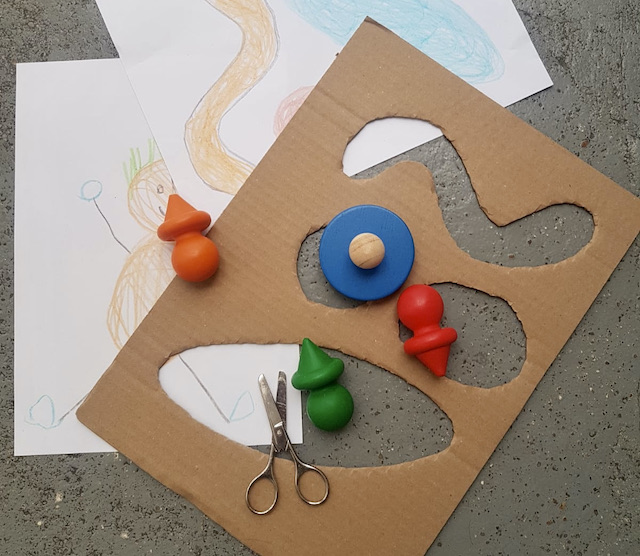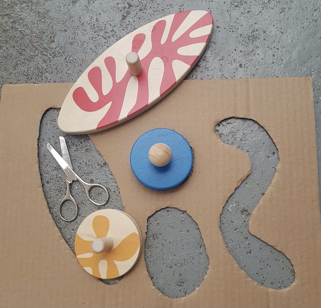 C’est en faisant dessiner un groupe de 6 petits gus de 18 mois dans une crèche que j’ai vu le succès que remportaient mes pochoirs de carton.