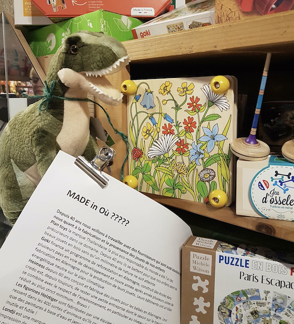 Et la France ? Nous sélectionnons chez Vilac les jeux fabriqués dans le Jura : pétanque, diabolo, voitures, nos petits cyclistes en métal viennent de Normandie, Sophie la girafe de Haute Savoie, les puzzles Wilson sont fabriqués en France, le plâtre de Mako Moulage vient de Carpentras, les bateaux Tirot sont fabriqués en Vendée, Bioviva et ses jeux de cartes sont carrément 100% bio et français…