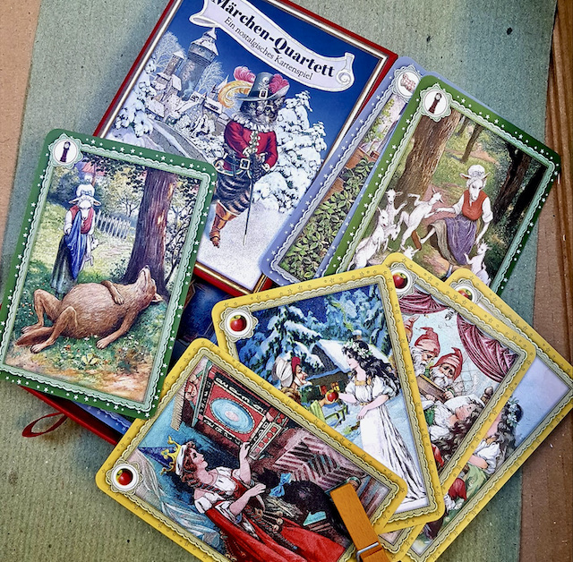 Ajout bien nécessaire pour expliquer comment jouer à ce topissime jeu de quartet. Les joueurs tout en faisant des familles de cartes, repèreront les contes de Grimm qu’ils connaissent et découvriront celui de Dame Hiver, peu connu chez nous.