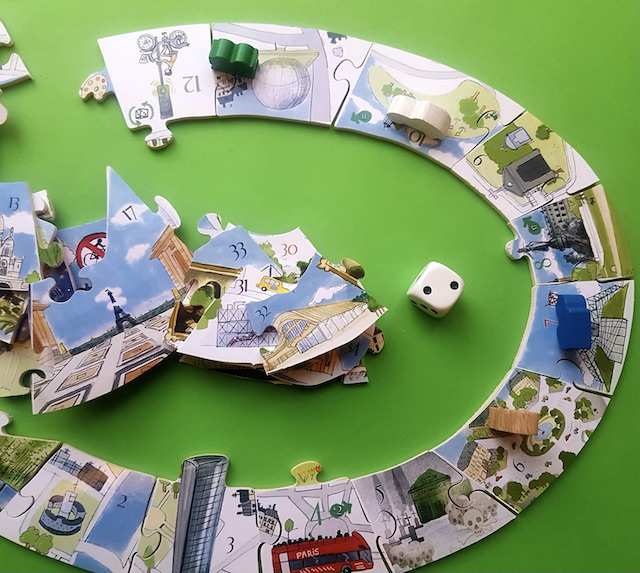 Gros boulot que de reprendre toutes les infos sur les monuments de Paris de ce merveilleux puzzle – jeu de l’oie made in France, en les simplifiant. Dès 5 ans, les titis pourront, en jouant, acquérir du bon savoir sur Paris… à leur niveau.