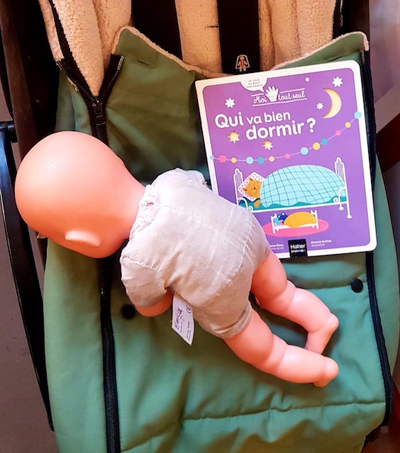… puis se servir de sa poussette comme support pour le lire.