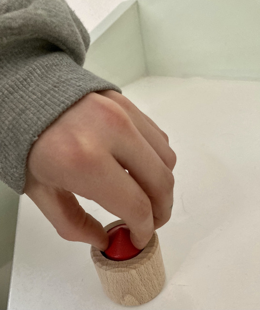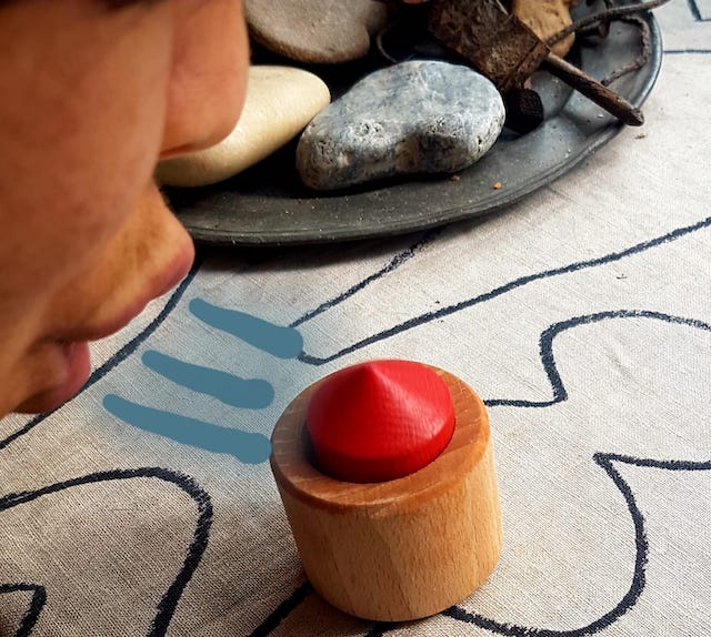En effet, en soufflant fort et d’un coup sec dans le contenant, le cylindre sort tout seul.