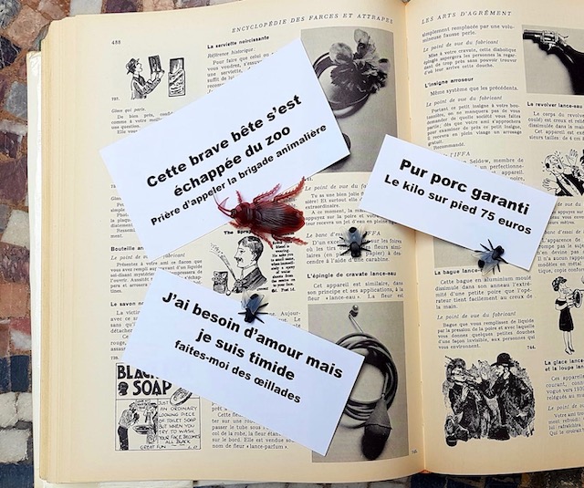 Ce livre me ravit car je vois que les farces que les gus viennent chercher chez le Si Tu Veux sont authentiques, toutes pareilles à celles du début du siècle dernier : glaçon farce, bague à eau, fausses mouches, coussin péteur…