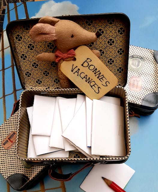 Chaque jour un petit papier (un seul !) sera déplié et le jeu programmé au bon moment dans la journée… avec à la clé de bien bonnes vacances où le « j’sais pas koi faire » n’aura pas sa place !