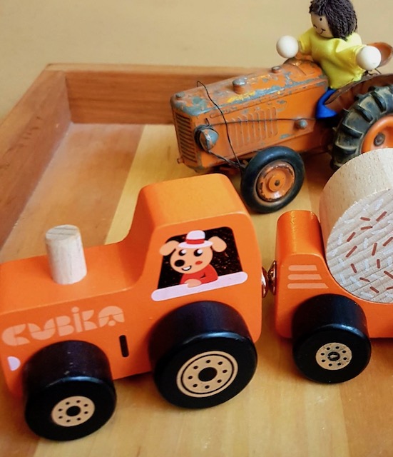 J’ai aussi installé dans la vitrine du Si Tu Veux le tracteur Cubika + mon vieux tracteur vintage tout rouillé + son conducteur habillé aux couleurs de l’Ukraine.