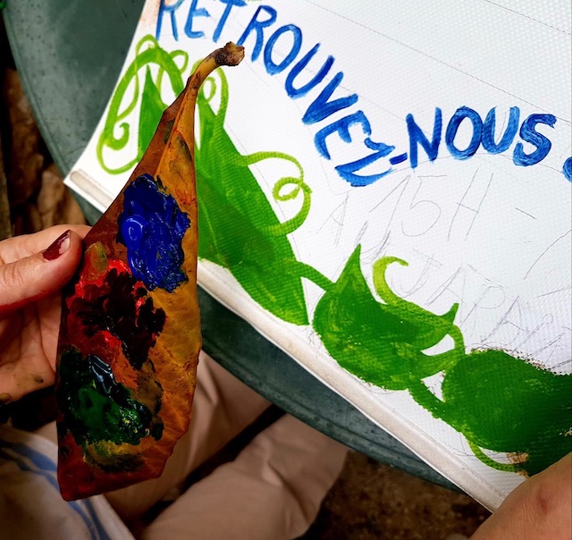Avec palettes de peinture top écolo et un plaisir à manier le pinceau qui faisait du bien à tous !