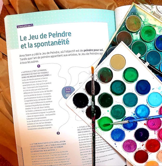 Rien que de lire ce qu’est le jeu de peindre chez Arno Stern donne envie de sortir les pinceaux… à tout âge !