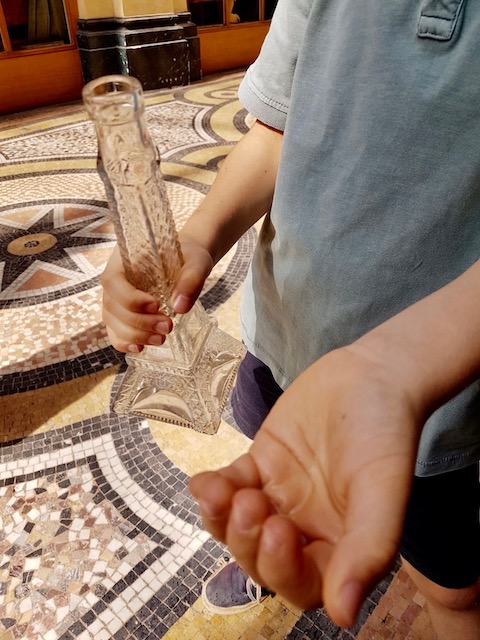 Comme je les aime ces jeunes touristeaux venus des 4 coins du monde quand je les vois se régaler à plonger leurs mains dans les pièces d’or et de diamants du coffre à trésor de la shop, ou s’enticher d’un animal en peluche qui ne les quittera plus ! Bon, évidemment, avec l’arrivée de la chaleur, il me fallait ajouter un peu d’amusette pour ces gus en mode surchauffe. Pour se rafraîchir ils ont désormais droit, après leur passage chez le Si Tu Veux, à de l’eau de Paris mise dans ma bouteille Tour Eiffel.