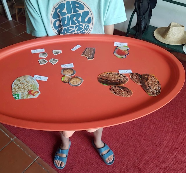 Hop, le sablier est lancé pour un jeu d’épicerie avec découpage des “aliments“…