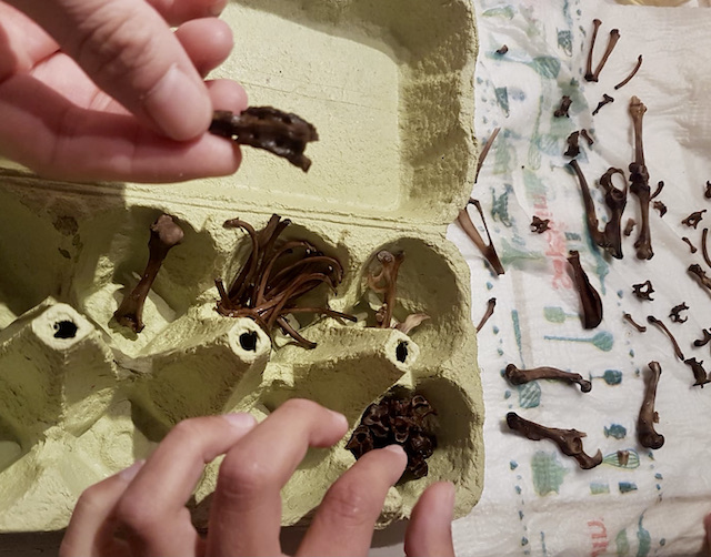 Avec boîte façon Montessori pour trier et classer les ossements.