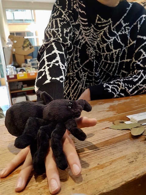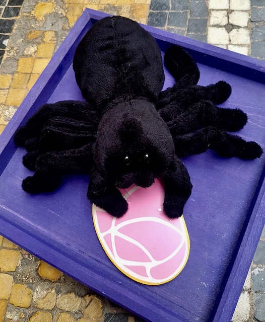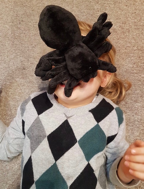 Car oui, c’est en caressant ce doudou, en détaillant ses attributs, qu’on devient savant : 4 paires de pattes, 2 pédipalpes qui servent à attraper ses proies et 2 chélicères, les crochets qui permettent à notre sympathique bestiole d’injecter du venin avant de boulotter sa proie.