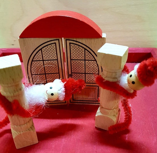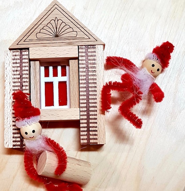 Après avoir posé les premiers blocs, je confie la construction de la « résidence » aux lutins.