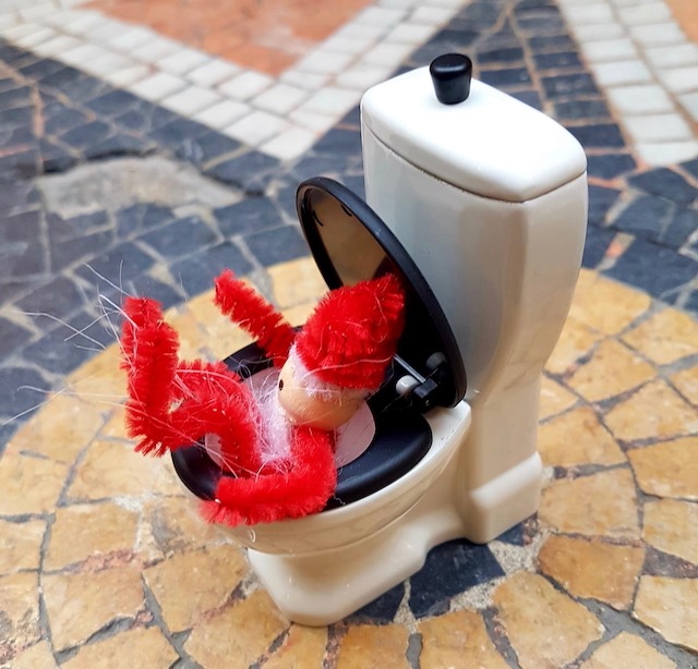 « Il faudra que j’avertisse mes enfants que cette année le père Noël passe par les toilettes pour déposer ses cadeaux ! » m’annonce-t-elle sur un ton pince-sans-rire !