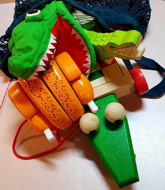 *(Crocodile en bois à tirer/ Crocodile Holztiger/ Marionnette crocodile/ Poulet en bois à découper)