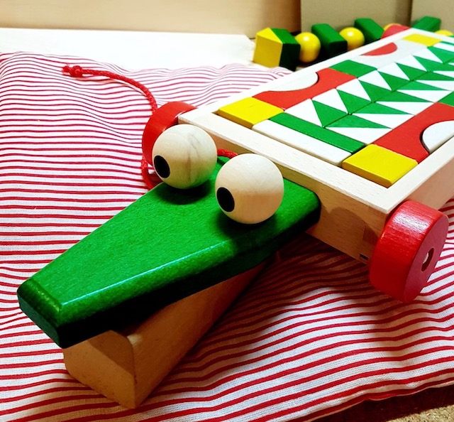 *(Crocodile en bois à tirer/ Crocodile Holztiger/ Marionnette crocodile/ Poulet en bois à découper)