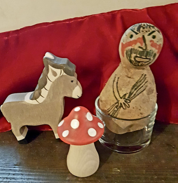 Ce tubercule en forme de bonhomme n’a pas échappé à mon œil « créatif ». Et hop le voilà devenu Père Fouettard, afin de signaler à St Nicolas qu’on l’attend* !
