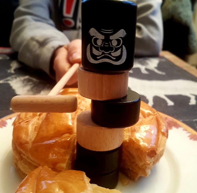 Cette année j’ai invité un Daruma à la galette des rois du Si Tu Veux, juste histoire de lui faire rencontrer Melchior, Balthazar et Gaspard. Le Daruma est un moine bouddhiste très populaire au Japon, et l’on raconte qu’il entre si profondément en méditation que ses membres se sont fondus dans son corps !