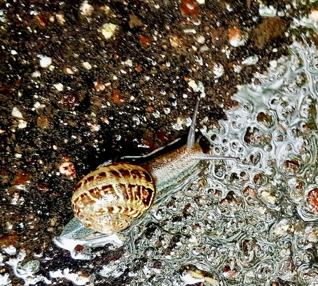 En partant bosser rencontre d’une flopée de jeunes escargots faisant l’école buissonnière …
