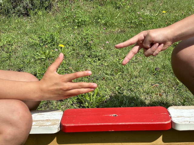 Juste avant leurs grandes vacances J’avais promis une maxi séance de jeux de “trois fois rien“ à des CM2. Le jeu de la mourre, en faisait partie : gros succès. Un des enseignants passant par là a pensé que ce jeu conviendrait mieux à des CP…