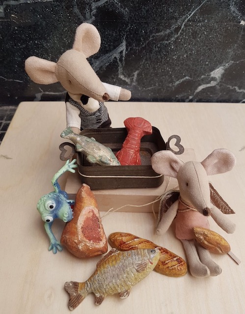 Elles racontent qu’elles ont aussi pêché des poissons qui affluent à un affluent. Tout en jacassant elles négligent leurs invités ; le monstre à doigt est moins négligent et apporte la bidoche pour ceux qui sont allergiques aux crustacés !
