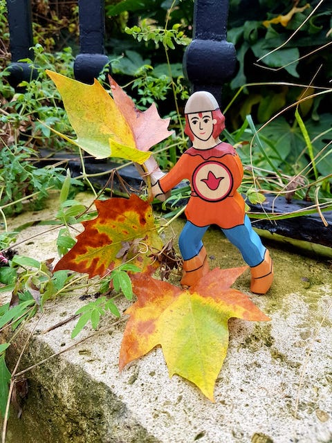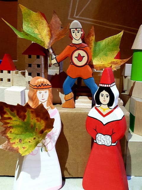 Cette façon de se créer une dernière robe- pièce unique m’épate, me met en joie… J’en fais cadeau aux figurines de bois de la shop, bien contentes d’avoir de quoi s’inventer des histoires avec ces merveilles d’automne!