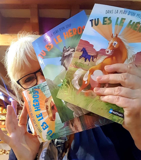 Des aventures concoctées avec ma “patte spéciale“ qui prend aux tripes lecteurs et lectrices lorsqu’ils doivent faire des choix en lisant l’histoire-jeu, tout en enrichissant leurs connaissances sur le sujet.