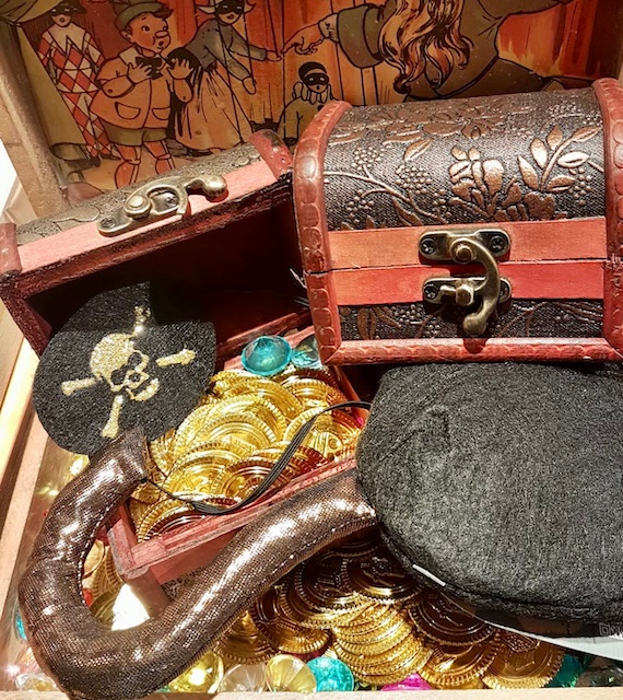 - Le crochet de pirate et un coffre à trésor pour Barbe rouge ou Anne Bonny