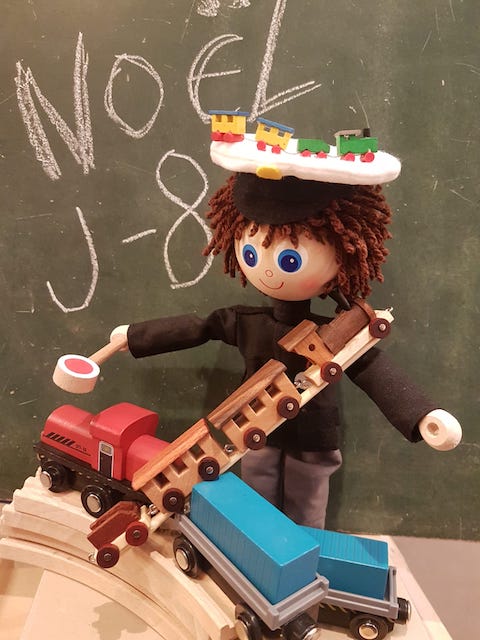 Quel bonheur que d’avoir chez le Si Tu Veux, en plus des circuits de trains en bois classiques et autres mini trains, ce tip top personnage en bois : un chef de gare venu tout droit des forêts Carpates.