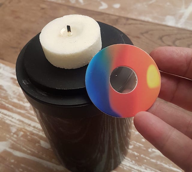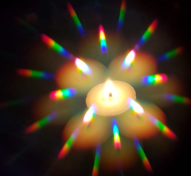 Je n’ai pas résisté, de mon côté, à faire de l’arc-en-ciel de maison avec une mini bougie… whaouuh trop beau !