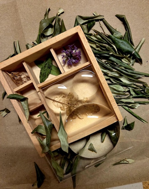 Boîte-loupe à casiers en main, la sortie peut avoir un but précis pour recueillir des échantillons de la nature (à ramasser au sol bien sûr) : bouts d’écorce, feuilles de différentes formes pour compléter une collection…