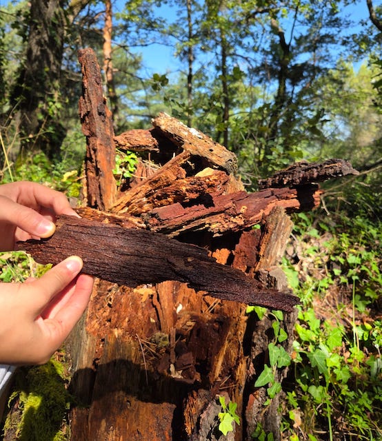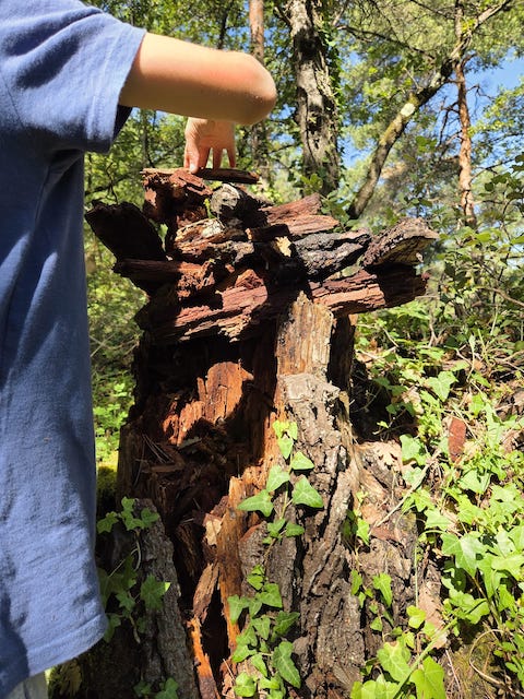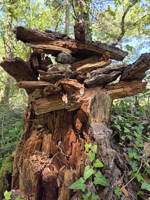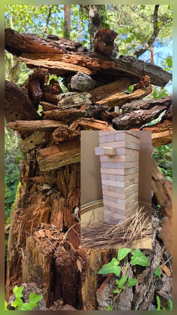 Monter la tour-tronc avec tous les bouts d’écorce tombés au sol est déjà très agréable.
