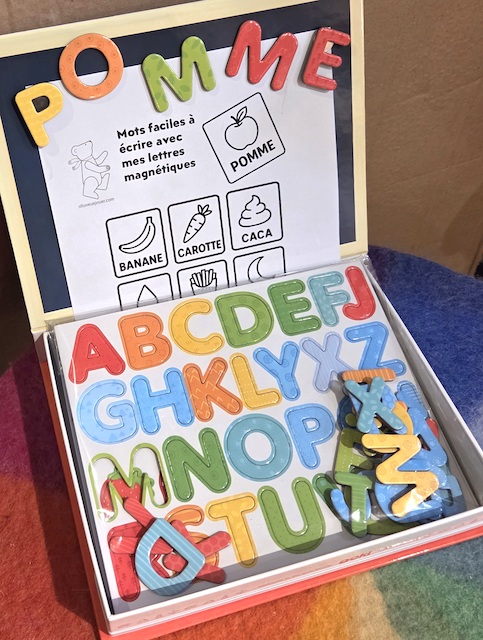 Ils ont les doigts qui démangent en découvrant la boîte -tableau avec ses lettres aimantées.