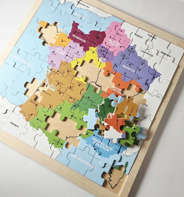Après plusieurs séances de puzzle-entraînement, sûr de sûr de sûr, que les 13 noms des régions de France seront ancrés pour toujours dans les caboches de nos titis … Et nous on aura révisé en revisitant le pays !