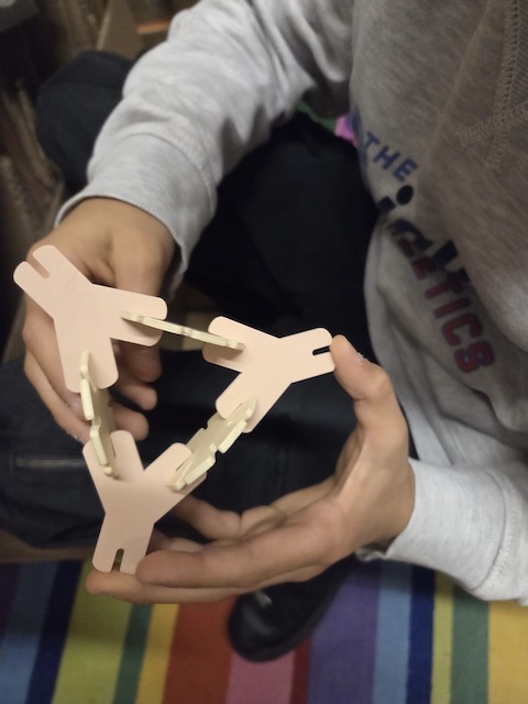 - L’intelligence logico-mathématique avec organisation, analyse des pièces de bois puis construction d’une parfaite étoile de bois.