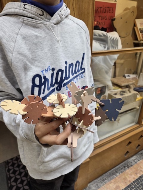 Ces formes de bois à encoches qui se combinent « à la facile » font découvrir à chacun/ chacune ses talents personnels.
