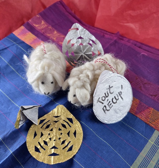 Des décorations tout récup’ appréciée par les brebis en feutre du Si Tu Veux !
